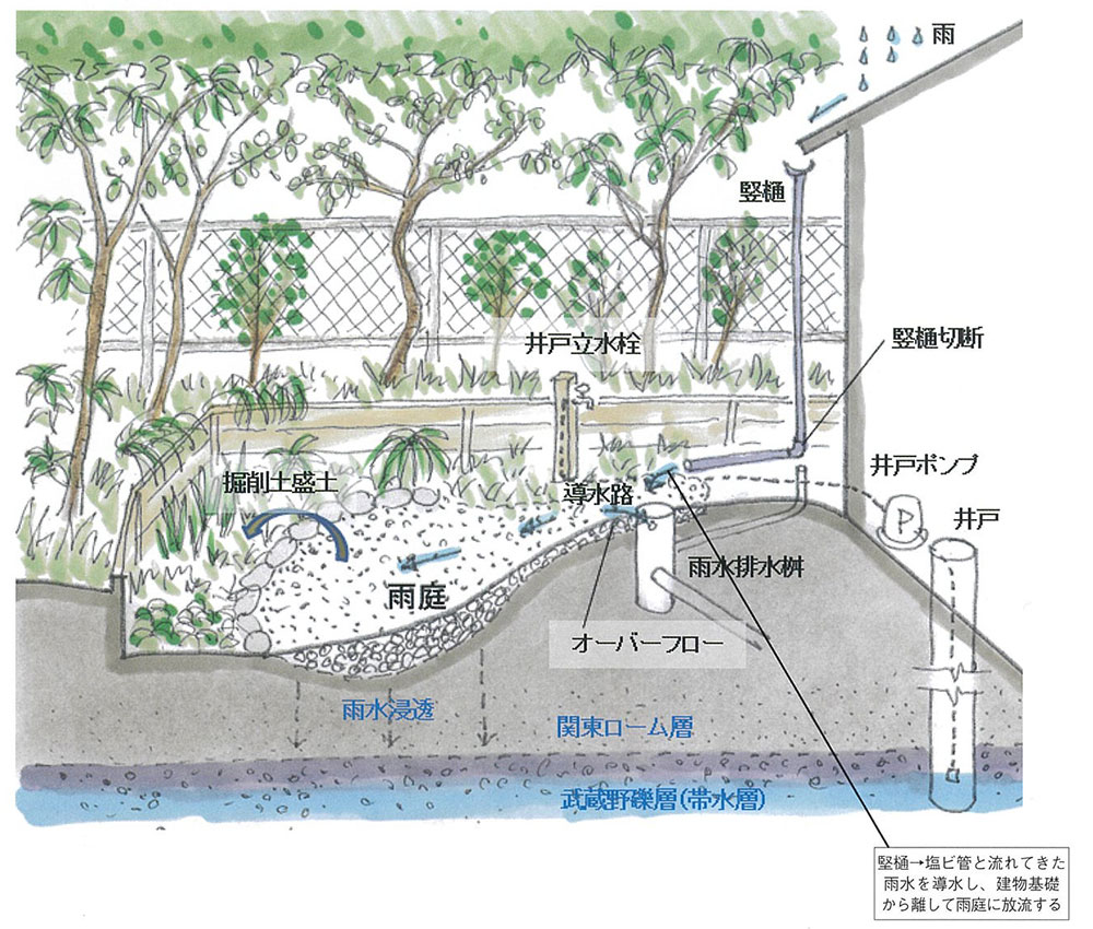 水害対策で注目の「雨庭」、雨水をつかった足湯や小川など楽しい工夫も。京都や世田谷区が実践中。