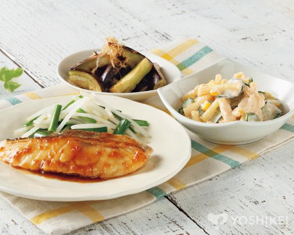 白身魚となすのおろし煮 ウインナーと野菜の彩り炒めさっぱり梅あえ 食材宅配のヨシケイ 夕食ネット レシピ・メニュー・献立付き。