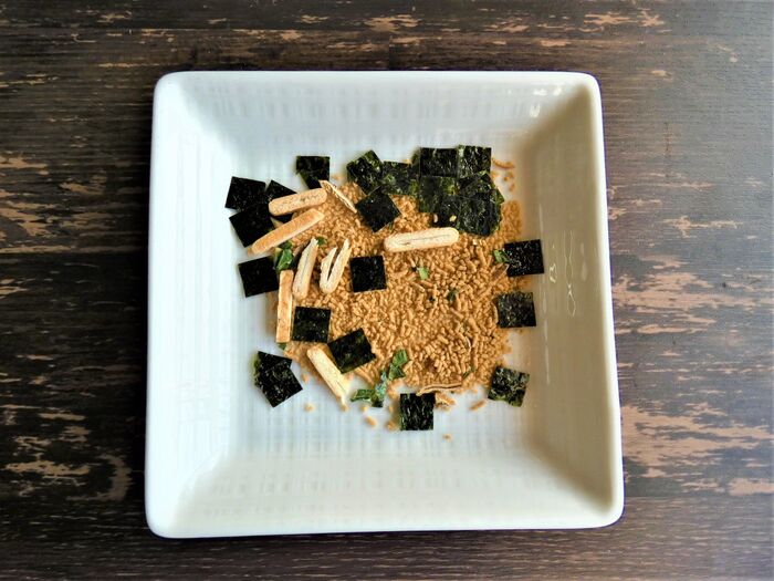 かまぼこと手まり麩のお吸い物鰹節 かつおぶし ・だしの素・つゆのマルトモ。