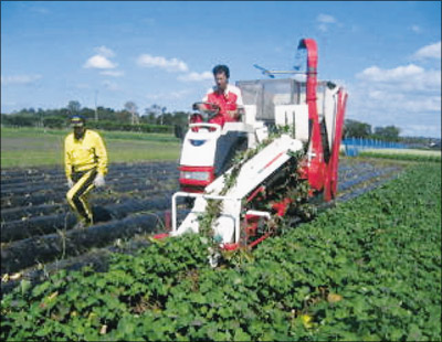 能古島でサツマイモの「つる返し」 蔓返し農地所有適格法人 株式会社ヴァンベール 株式会社ヴァンベールフーズ。