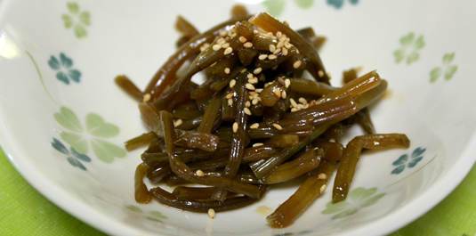 サツマイモの「茎」が手に入ったら是非味わってほしい一品♪ご飯のおかずに!お弁当に!お酒のつまみに!「芋づるのきんぴら」株式会社松陰会舘。