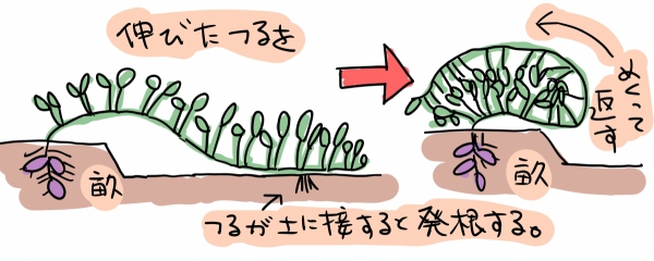 サツマイモを甘く育てる「つる返し」とは:家庭菜園の裏ワザ見積り外構工事:優良なエクステリア業者を無料で紹介・提案。