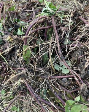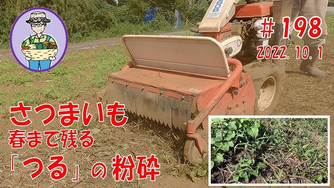 春まで残るさつまいもの「つる」を粉砕して、残渣を畑に戻す第198話 オーガニック栽培。
