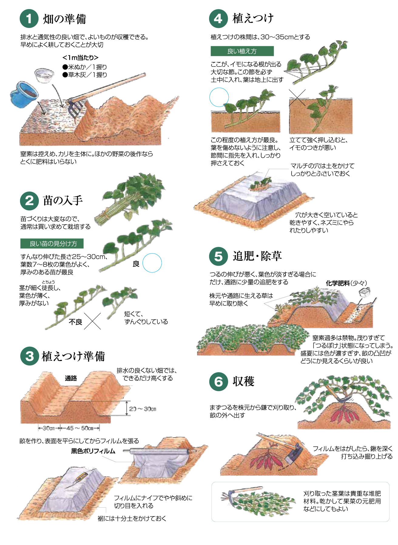 収穫後のさつまいものツルを畝に埋め戻して畑に還元する方法マイホームの予定表。