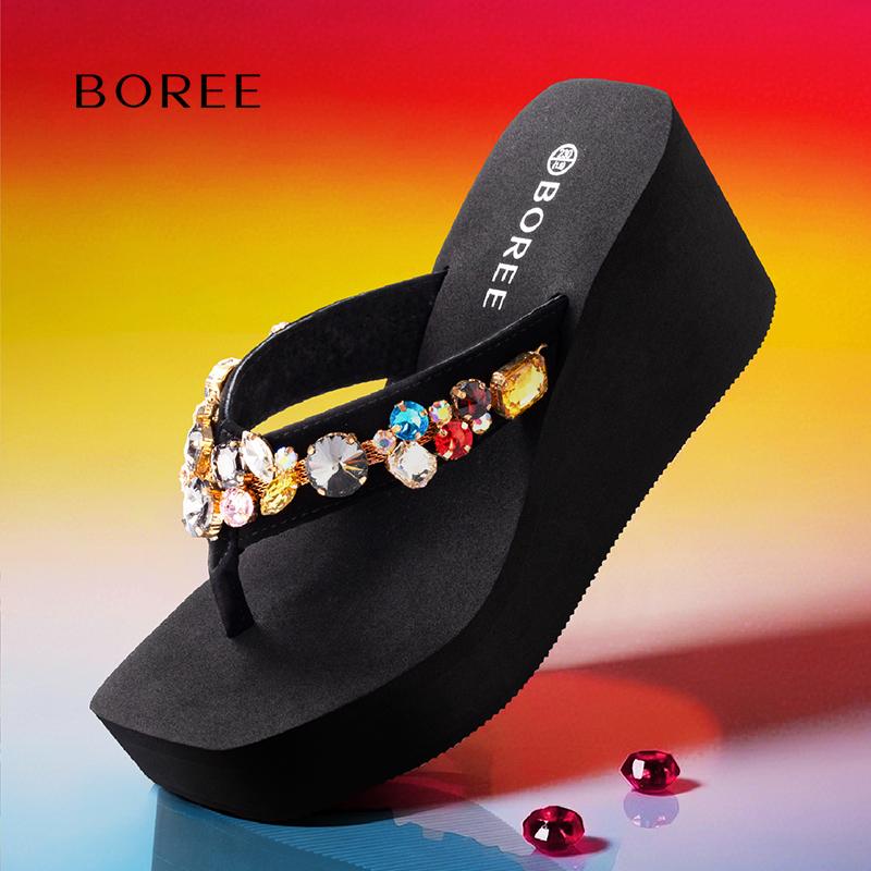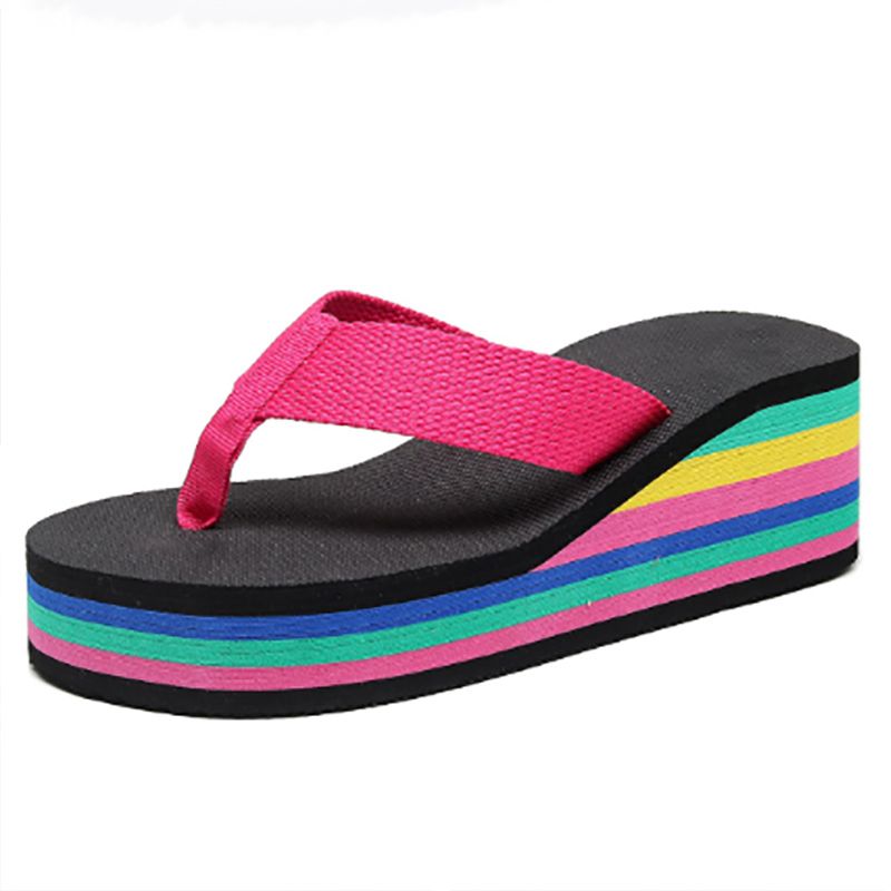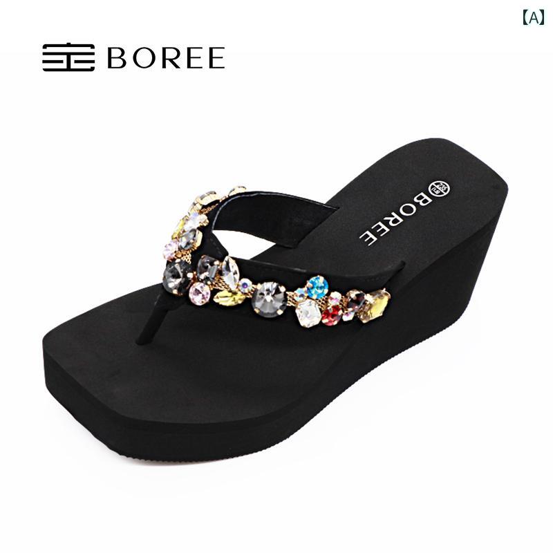 サンダル ビーチ ハイヒール ラインストーン カラフル レディース 夏 ファッション 海辺 バケーション ウェッジ ヒール アウトドア AmazonLSDZWハイヒール トングサンダル ボヘミア 厚底 心地よい 7cmウェッジヒール 砂浜のスリッパ 女性 厚底ビーチサンダル。