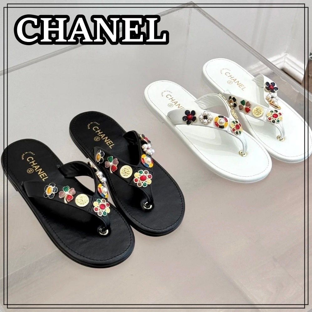 25P カラフルビジュー CHANEL ビーチサンダル フラワ。