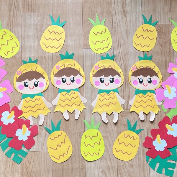 壁面 パイナップルちゃん 保育 夏 - 画用紙のポップアップカードと壁面飾りminne byGMOペパボ国内最大級のハンドメイド・手作り通販サイト。