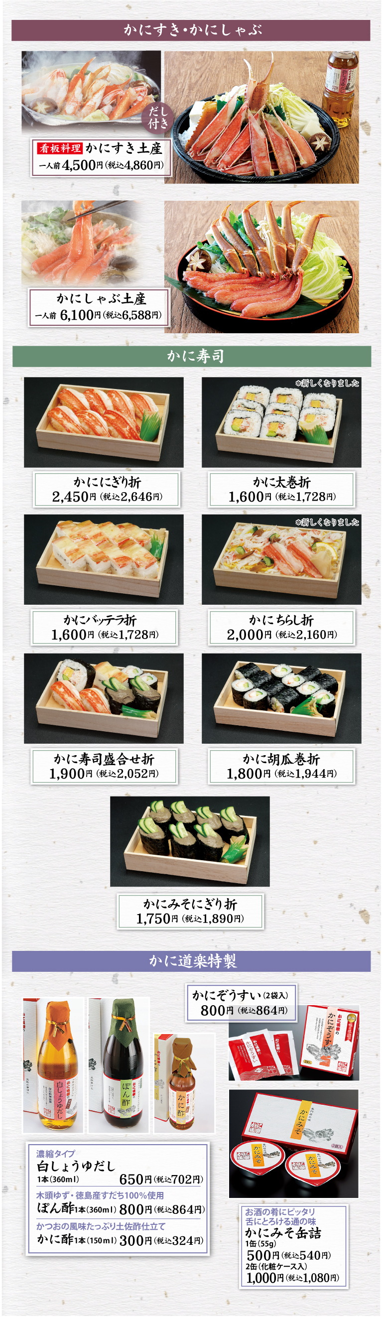 かに道楽のお持ち帰り 岸和田店お知らせかに道楽かに道楽グループのホームページ。全国にあるかに道楽 グループの店舗情報や詳しいメニュー紹介を掲載。