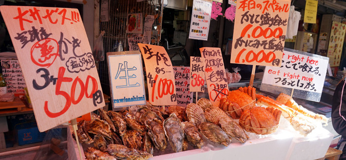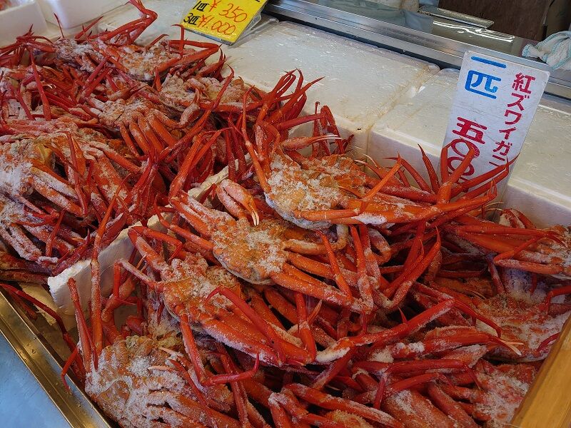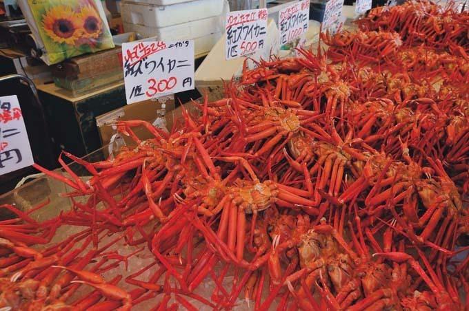 ズワイガニが100円から!魚介類の宝庫・寺泊「魚のアメ横」は食べ歩きが楽しい新潟県トラベルjp 旅行ガイド。