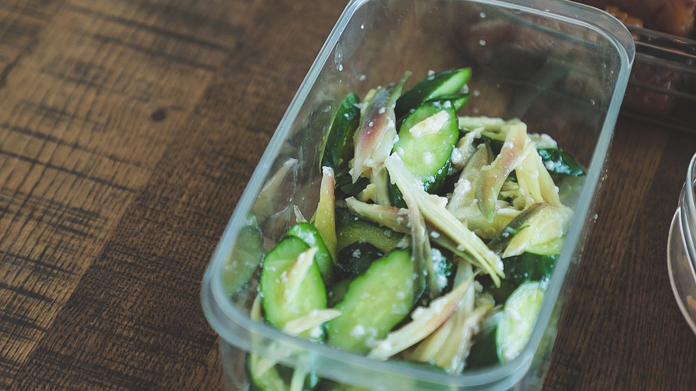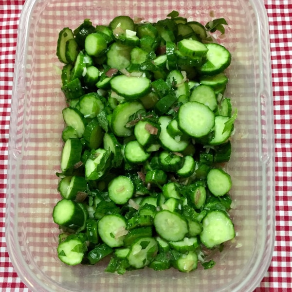 きゅうりと塩昆布の香味漬け作り置き お弁当 ポリ袋。