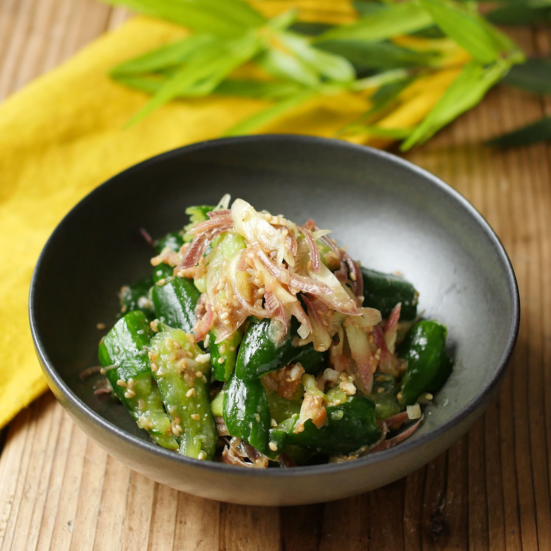 大量消費に!人気の作り置き常備菜。ポリポリきゅうりとみょうが大葉しょうがのさっぱり漬け - つくりおき食堂。