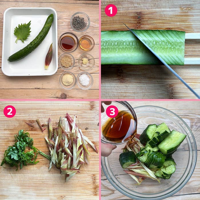 夏の手軽なきゅうりとみょうがのウマナムルレシピ。