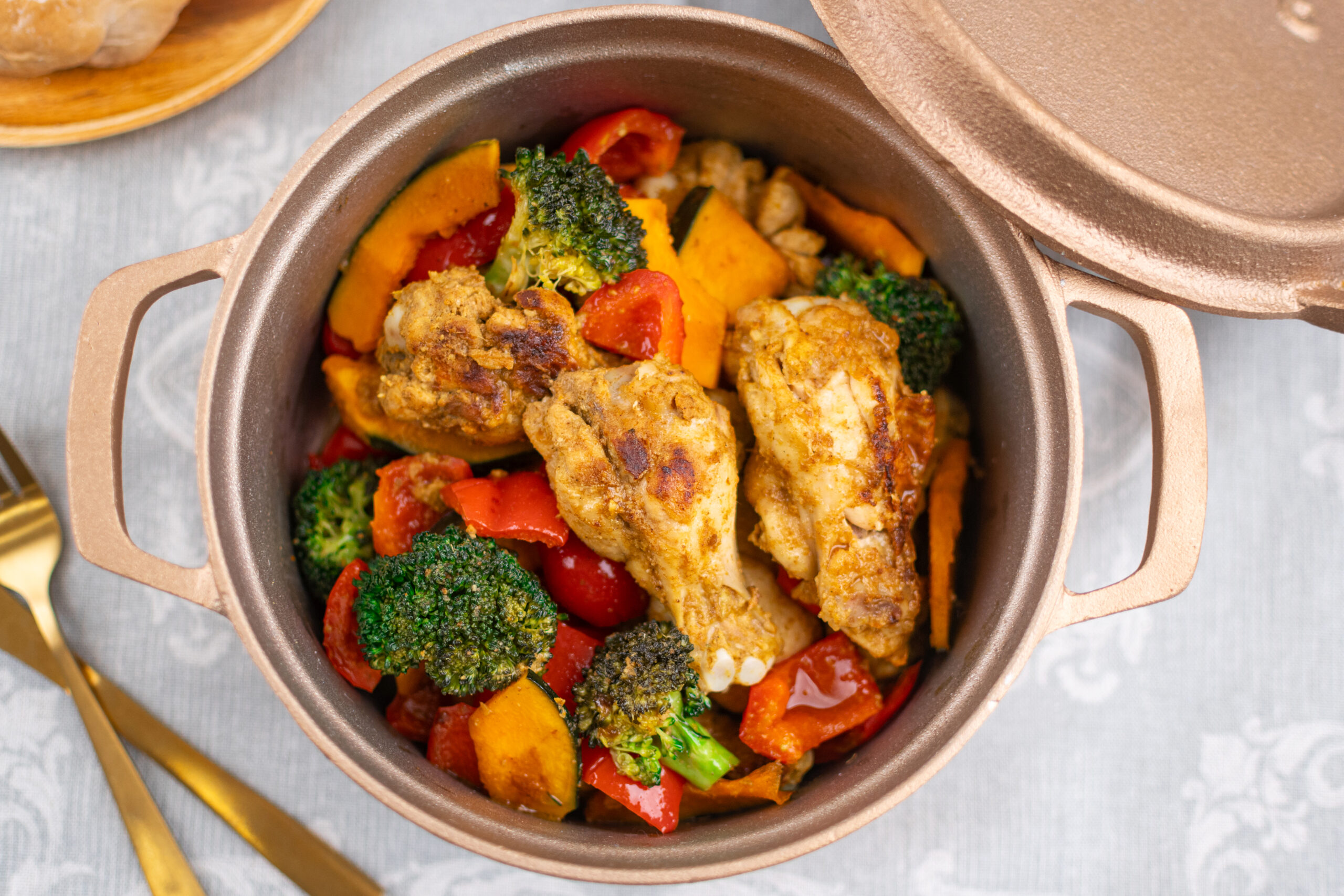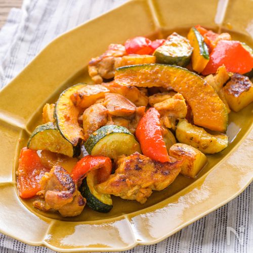 タンドリーチキンの素で野菜たっぷりタンドリーチキン。