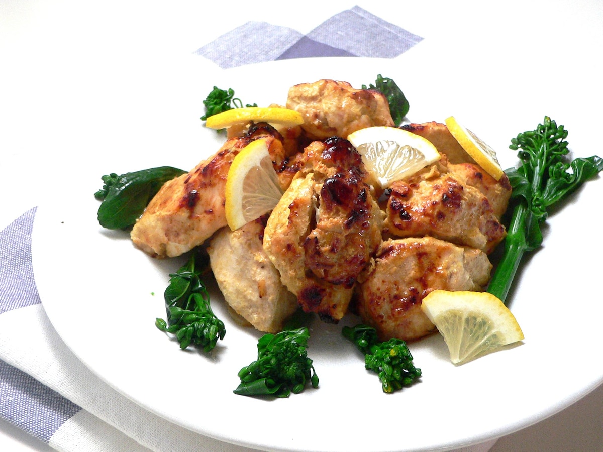 ノンオイルタンドリーチキンレシピ塩レモンが効いてる。
