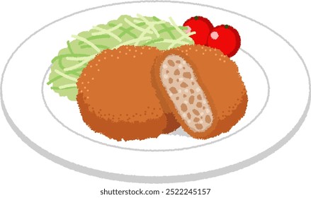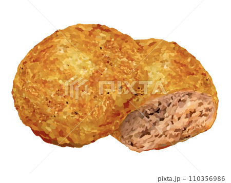 メンチカツ 1個と断面 のイラスト素材110356986- PIXTA。