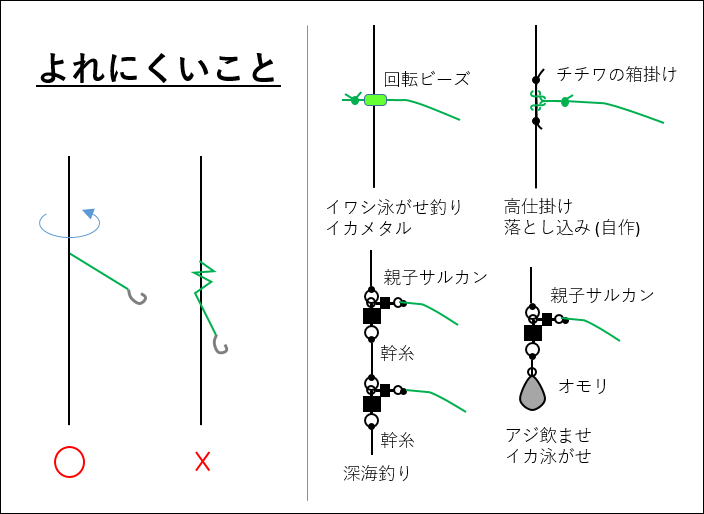 仕掛けが絡み難い枝針 エダス の作り方 ボートでのアジ釣り仕掛けなどに!。