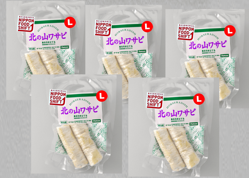 山わさび 70g~100g×5パックセット 北海道産山山葵 ホースラディッシュ 西洋ワサビ 蝦夷わさびメール便対応。