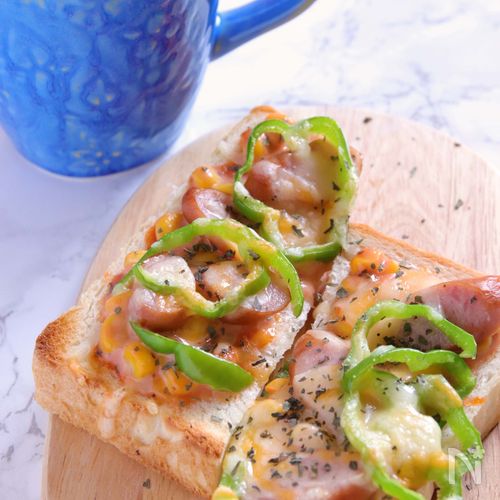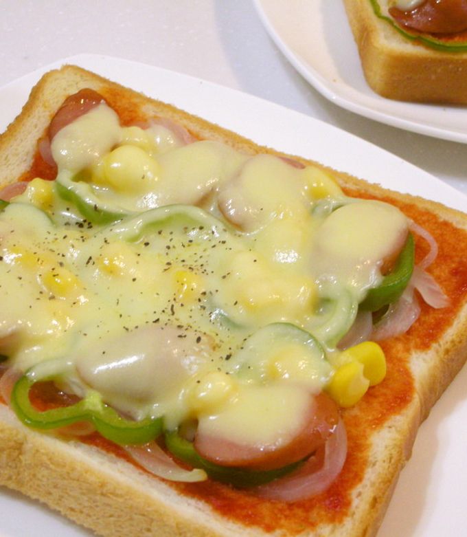 簡単に作れる! ベーコンとコーンのピザトースト。