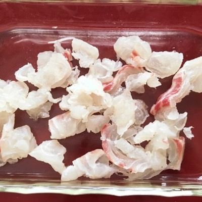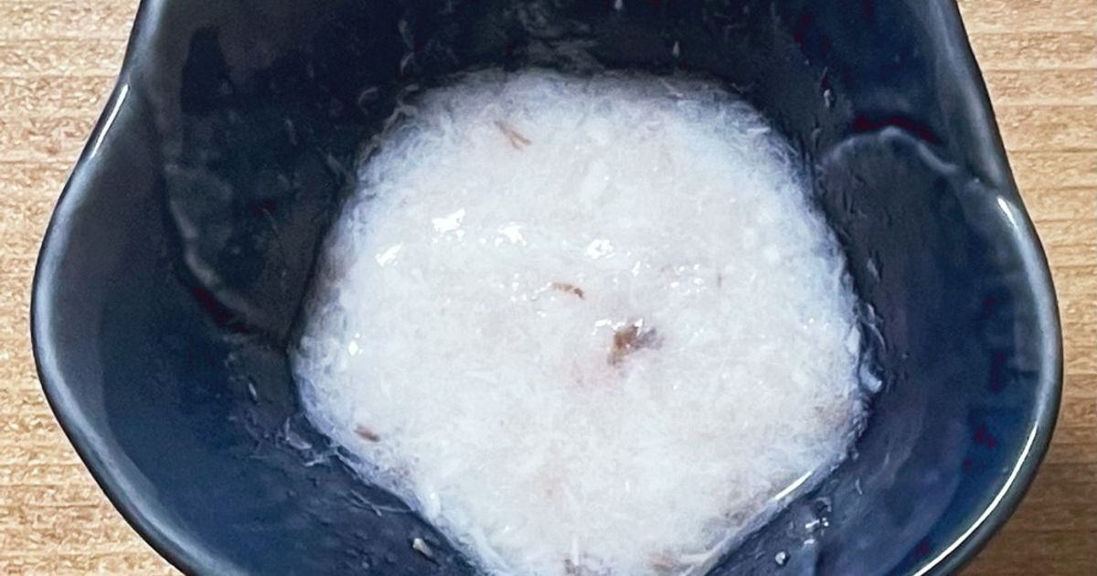 レンジで鯛のとろみペースト🐟 あらかじめ片栗粉をまぶしておくことで、簡単にとろみがつけられるよ😊材料・刺身用の鯛 約40g切ってあるものの方が楽だと思う〜🤣・片栗粉 約小さじ1 2 ・水 大さじ2作り方①鯛を切る 骨や鱗がないか確認してね②。