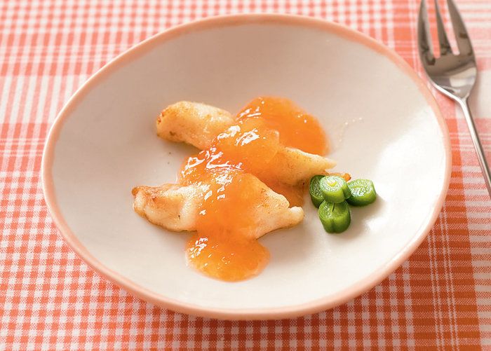 鯛のねばねばソースがけ」大人ごはん&幼児食 電子レンジで取り分けレシピたまひよ。