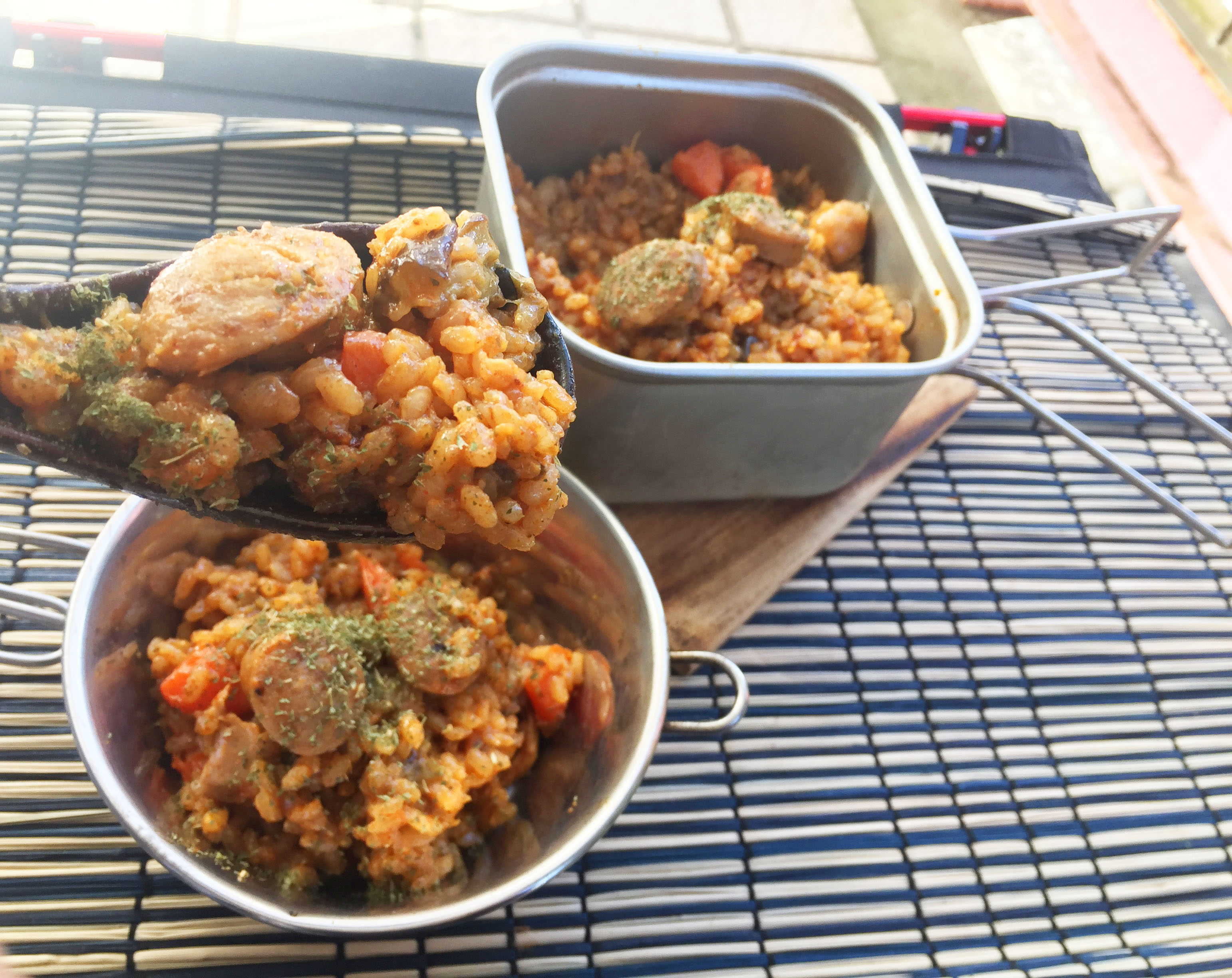 ゆるキャン△レシピ再現! メスティンでジャンバラヤ ベランダでランチseimenki-sorのブログ。