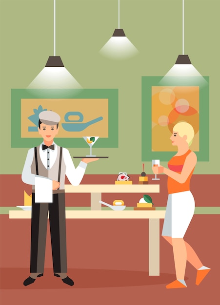 ホテルビュッフェ、レストランフラットベクトルイラストPremiumベクトル素材。