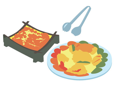 ビュッフェ・バイキングの料理が並んだイラスト - 無料イラストのIMT 商用OK、加工OK。