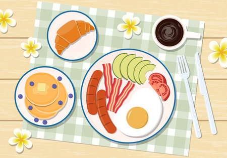 ビュッフェから盛りつけた朝食のイラスト素材104058641- PIXTA。