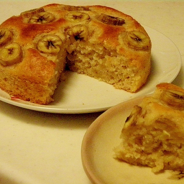 ベーキングパウダーなし米粉のバナナケーキ ふわふわエッグメーカーレシピおてがるレシピ。