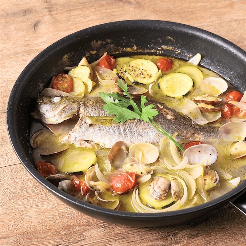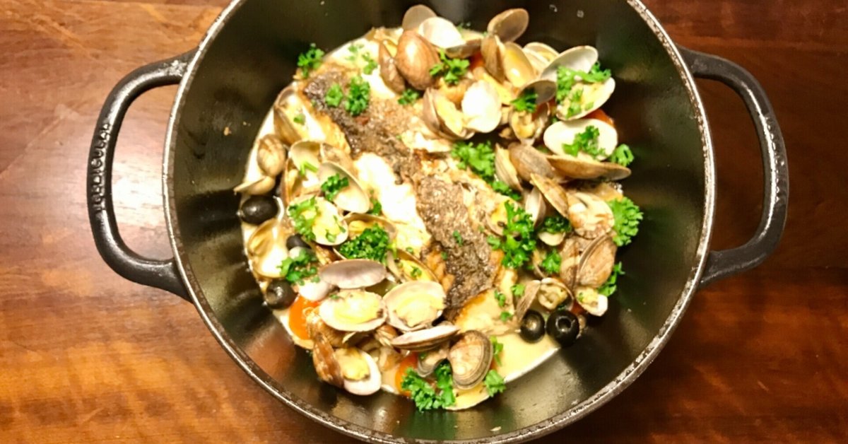 フライパンで作る! イサキとあさりのアクアパッツァ。