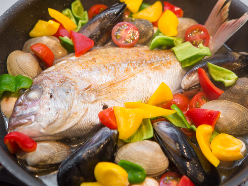 海の旨味たっぷり! イサキのアクアパッツア。