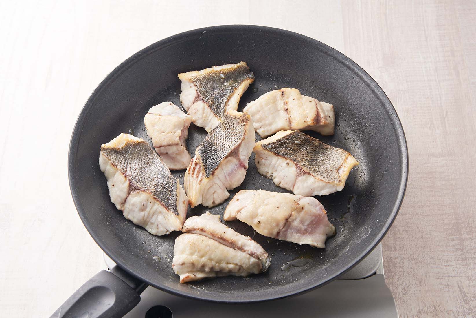 切り身使用 フライパンでイサキの塩焼き。