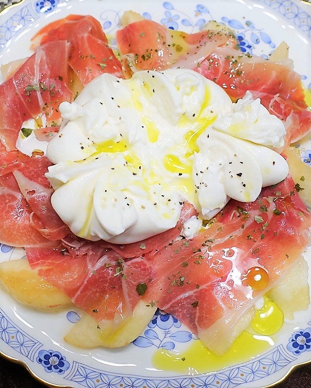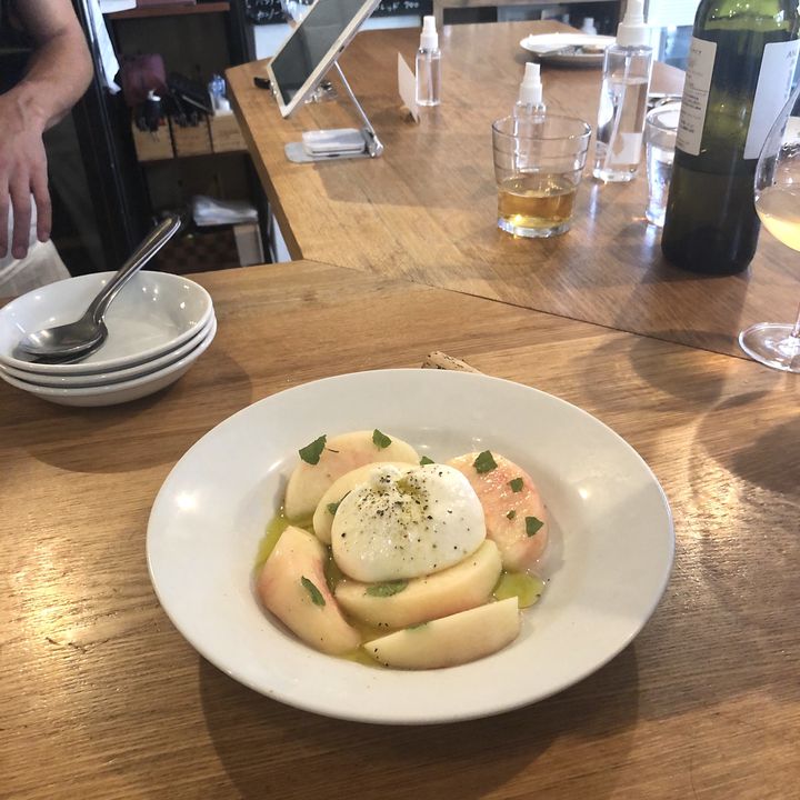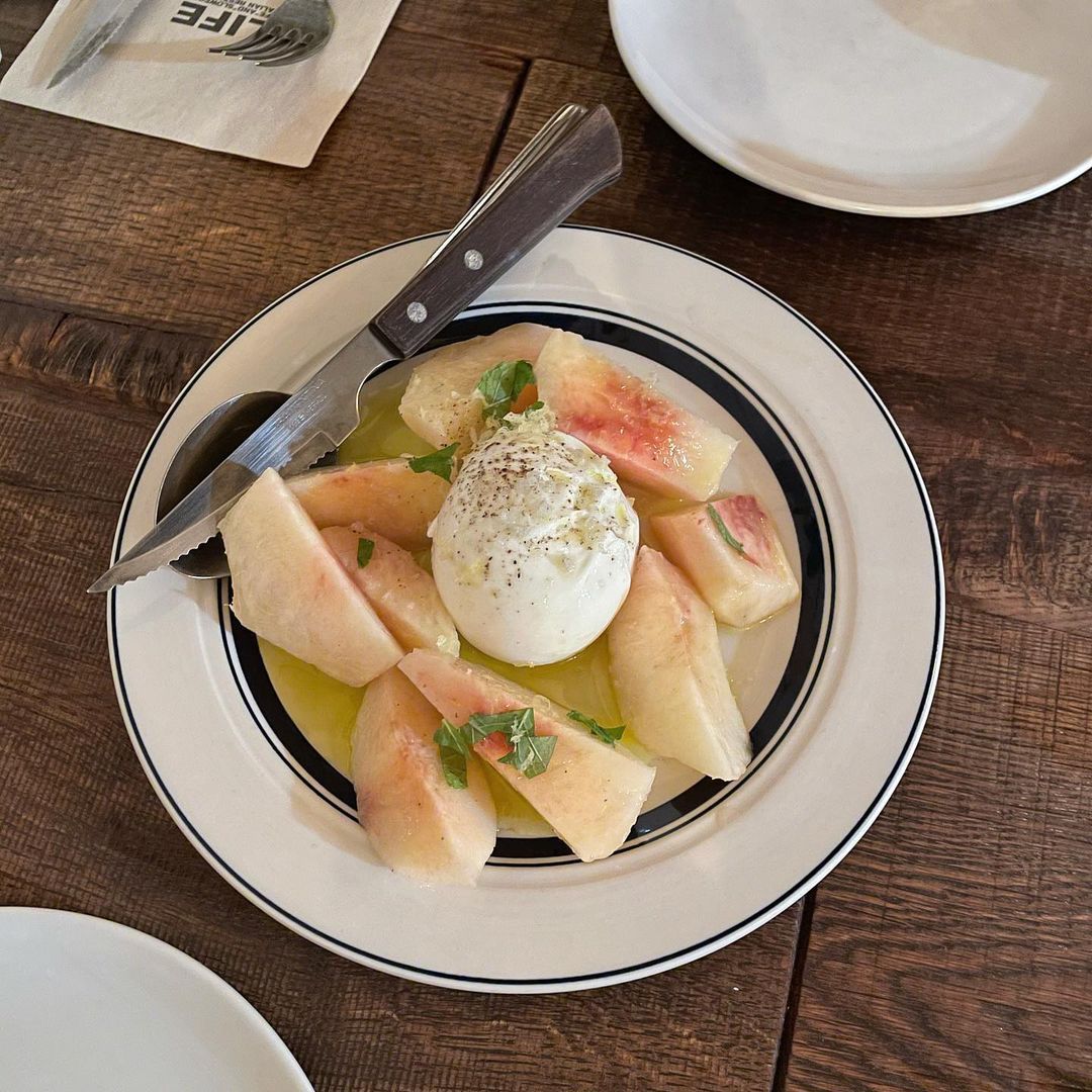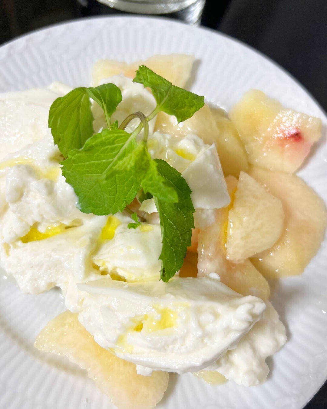 6月のブッラータは桃🍑ブッラータモッツァレラ青山イタリアン桃ブッラータ。