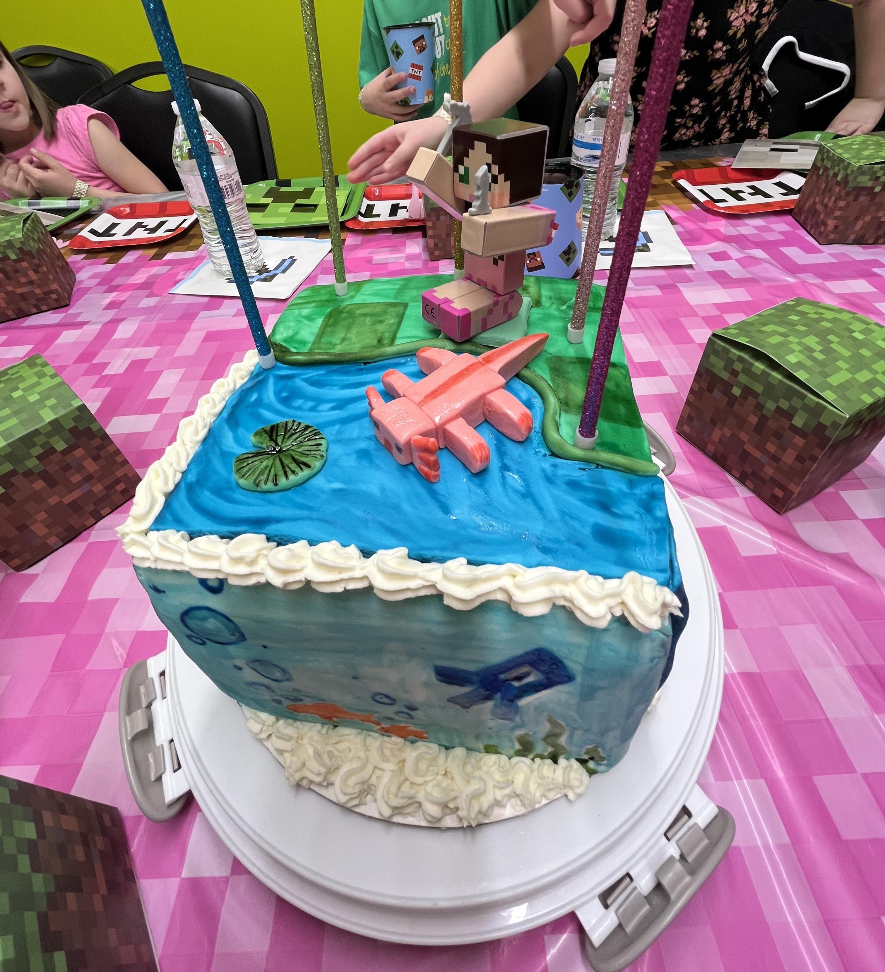 マイクラケーキで娘の友達の誕生日を祝う。