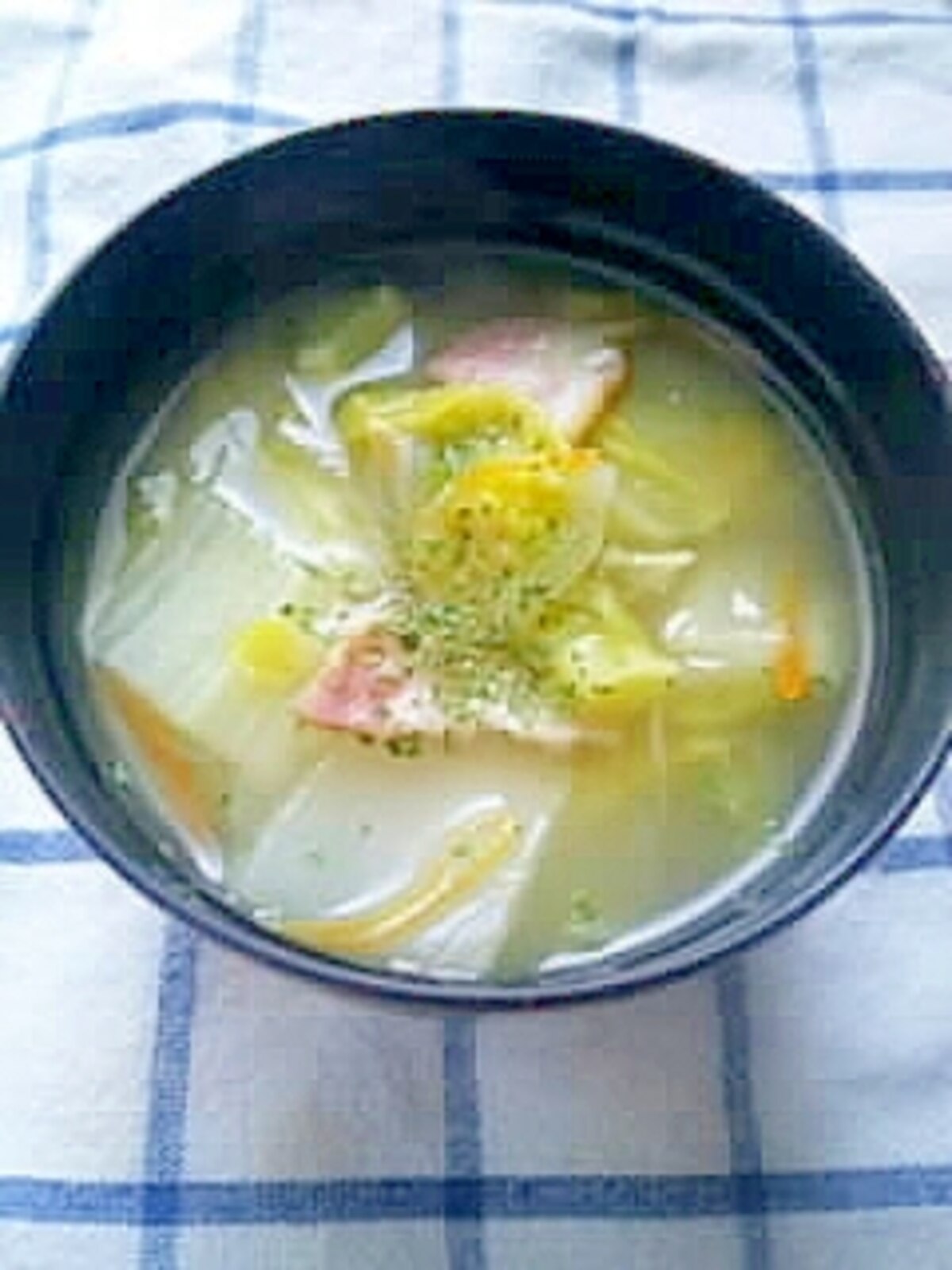 コンソメなしでもこの旨さ♪白菜とベーコンのスープ。