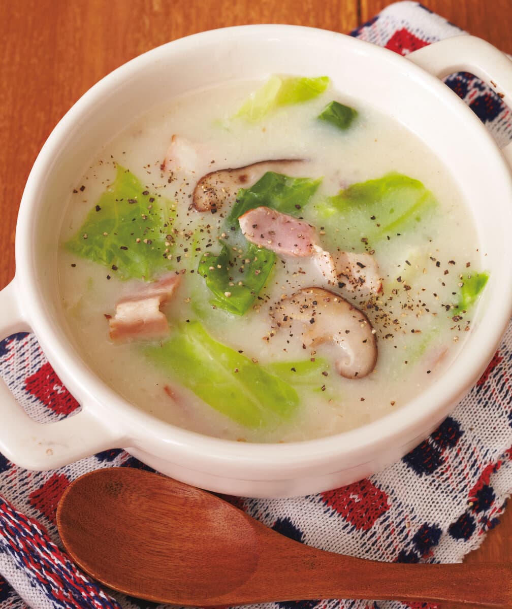 春キャベツとベーコンのバタースープ:日立保険サービス。