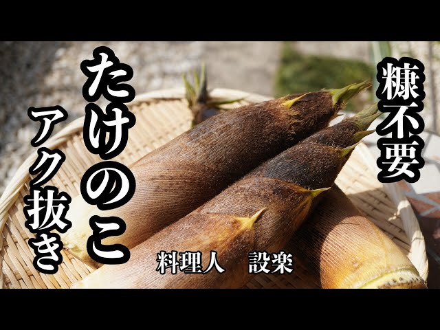 プロ直伝糠も重曹もいらない! たけのこの下処理水だけで筍のアク抜き 下茹で をする方法とプロのたけのこの使い方 - YouTube。