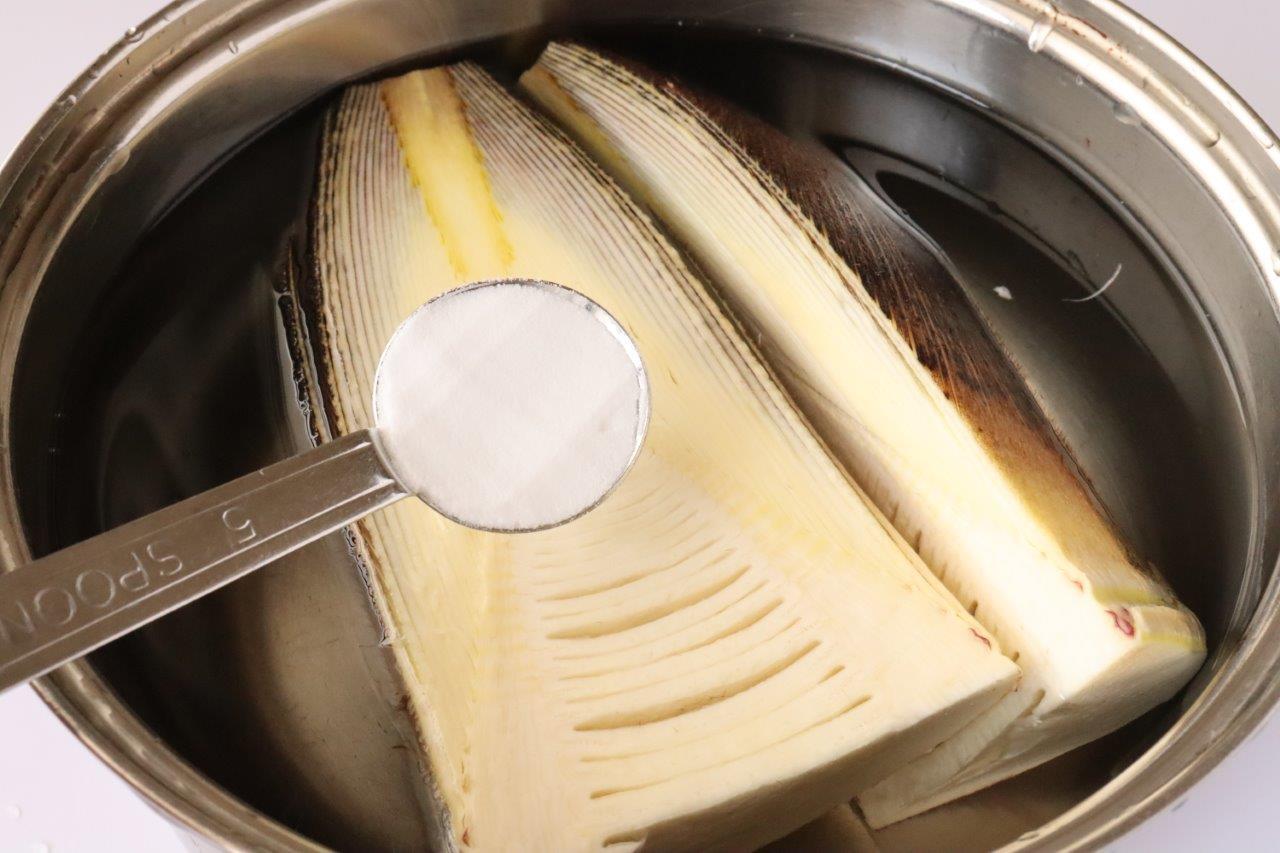 たけのこのあく抜きは重曹を使って時間を短縮。
