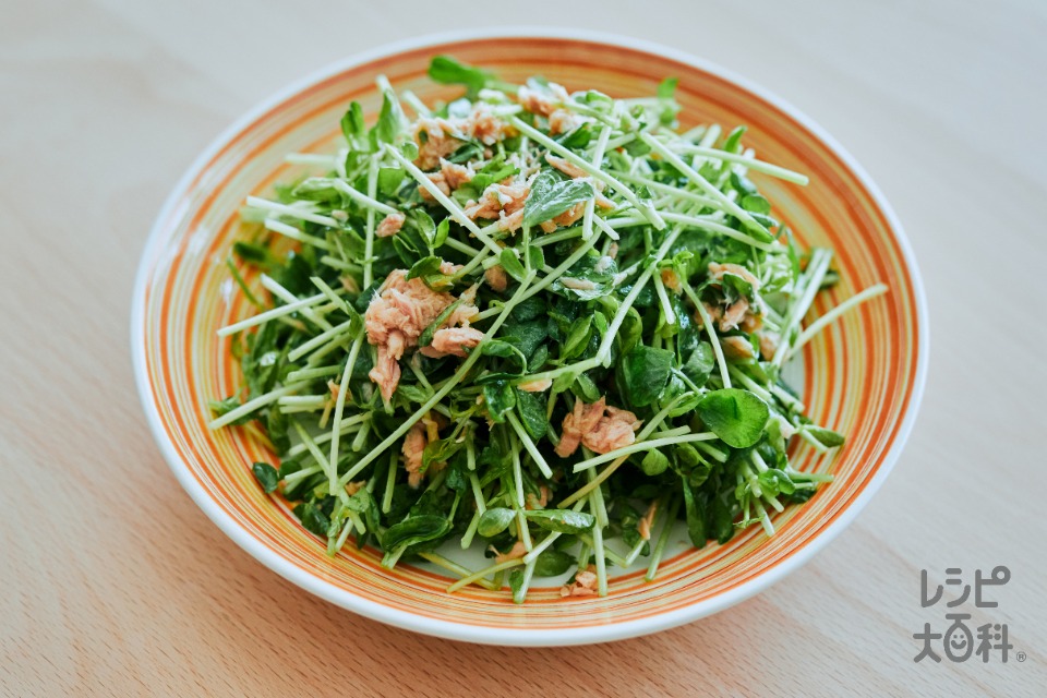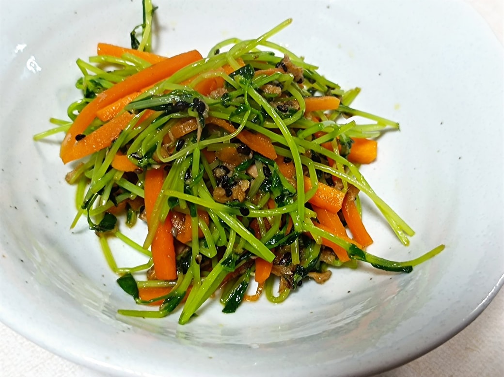 ただごま油で炒めるだけじゃもったいない。「豆苗」をツナ・にんじん・調味料で炒めるだけレシピ。