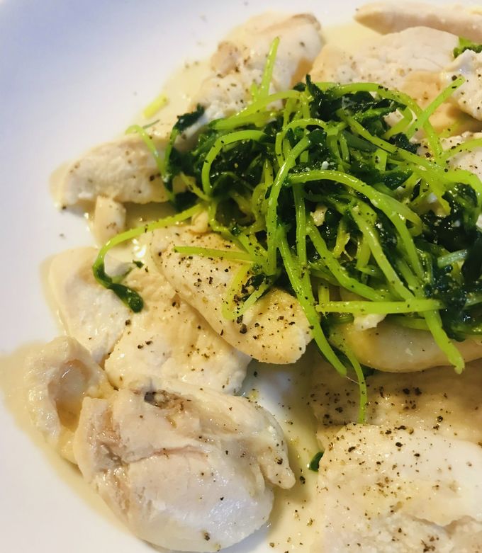 豆苗の鶏ガラ炒め』レシピ付きにっしんげっぽ〜KARADAOMOIの食卓。