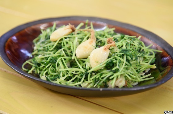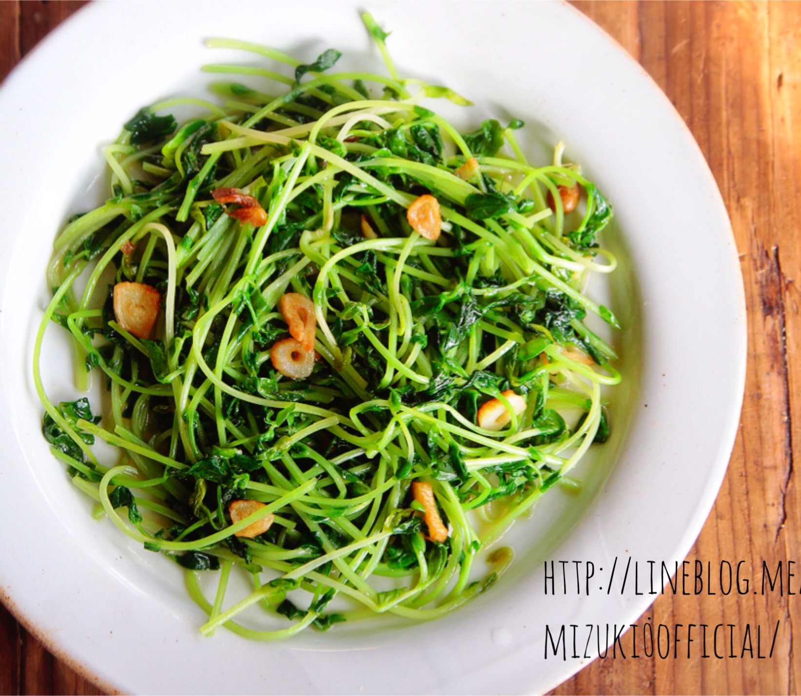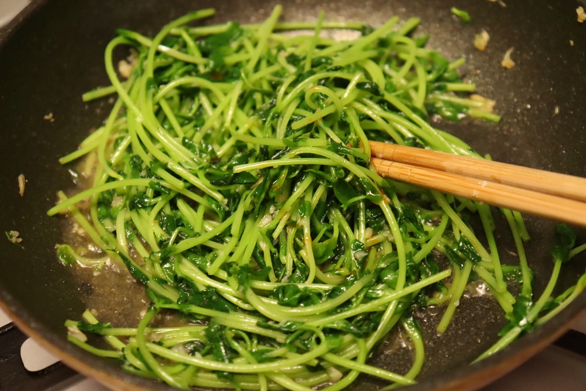 節約おかず 豆苗とにんにくのシンプル炒め。