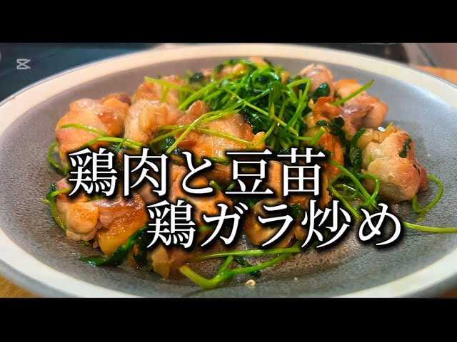 簡単一品料理 鶏肉と育てた豆苗を鶏ガラで炒める - YouTube。
