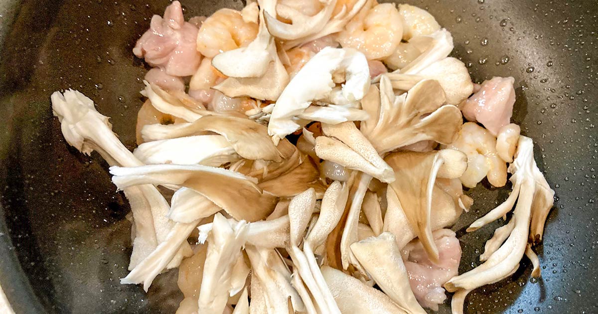 エビとチキンと豆苗のうま塩炒めLifestyle Academia。