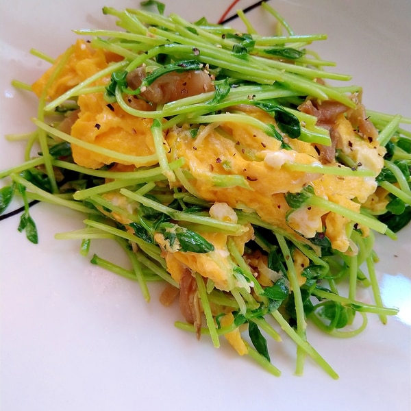 炒めるだけで簡単『豆腐と豆苗の炒り卵』~麺つゆ・鶏がらスープの素~ : Syuntaroの『食の荒野を彷徨う』。