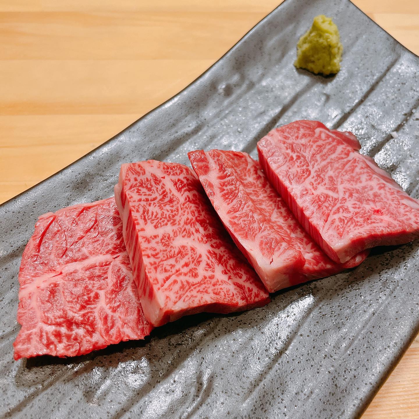 都内某所の 飲めロー のお店 『飲めるロース』と呼ばれるほどに とろとろのロースが有名な焼肉屋さん🔥 架電がんばって予約してくれたお友達に感謝🥹✨名物の飲めローのほかにも ニンニクがばちばちに効いたセンマイ刺しや 色んな部位が入ったタン塩もおいしくて注文必須。