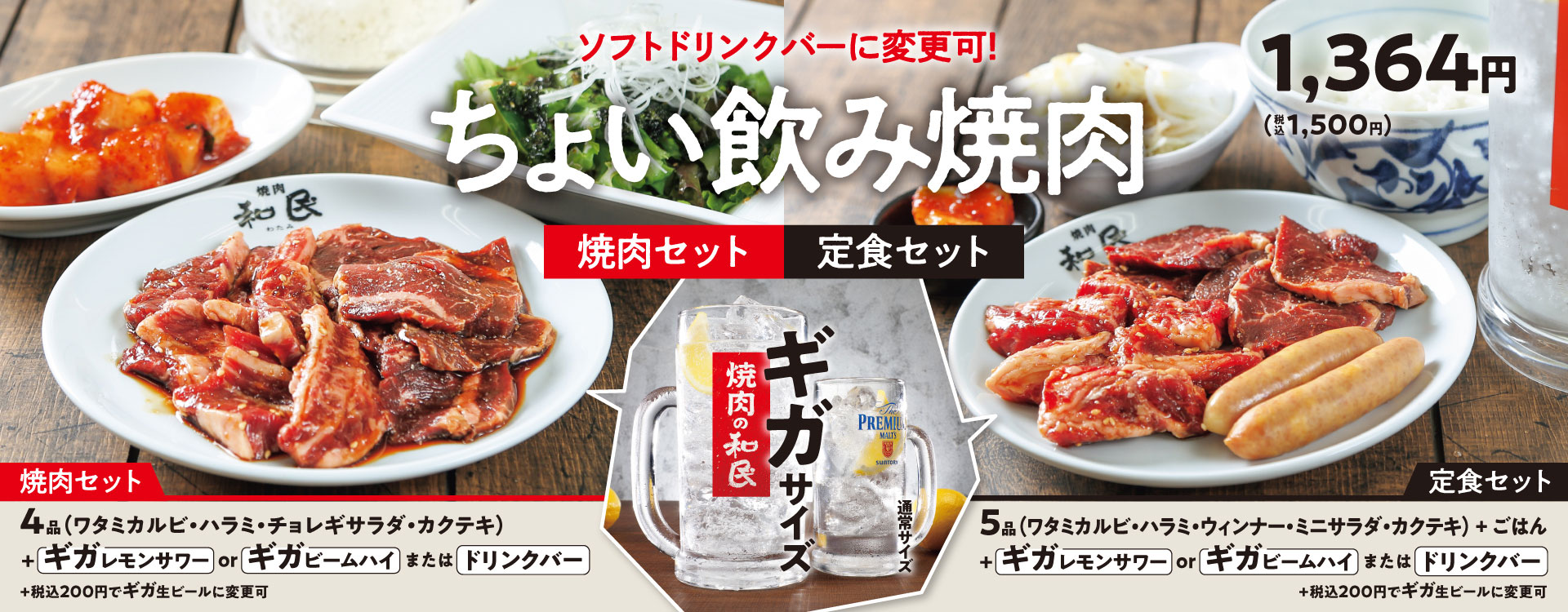 焼肉の和民 ドリンクバーにも変更できる『ちょい飲み焼肉』 - 焼肉の和民。