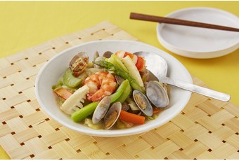 えび・アスパラ・豆腐の中華煮込み北海道ガス株式会社。