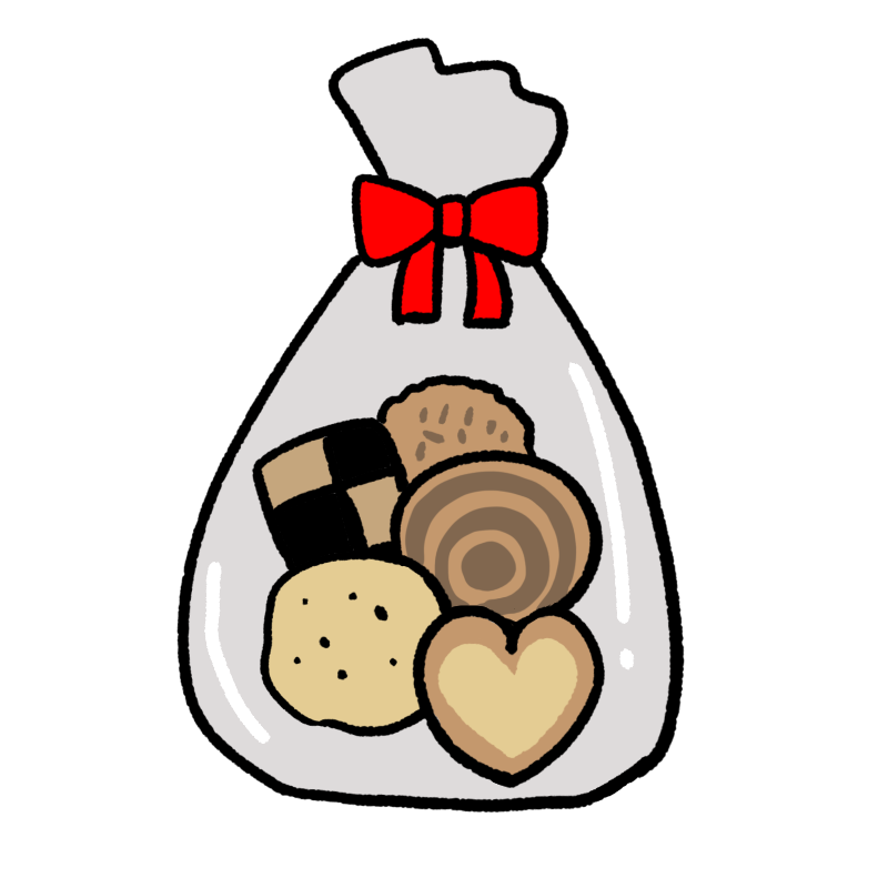 クッキーを詰め合わせたプレゼントのイラストフリー素材 イラストミント。