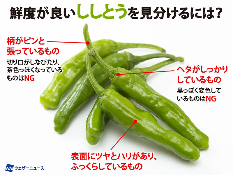 鮮度を見るポイントは? 生で冷蔵保存はNG? 旬のししとうの選び方と保存法 - ウェザーニュース。