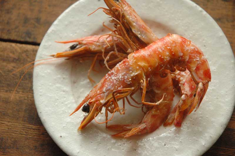 プリッとおいしい♪ 赤エビの刺身。